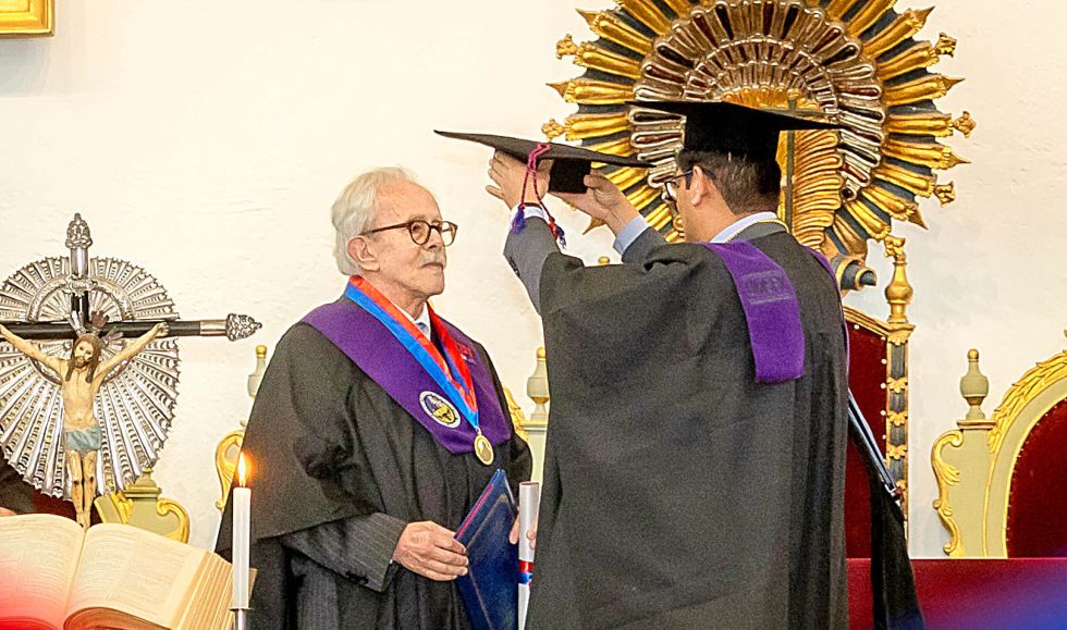Se lo entregó el rector Wálter Arízaga durante un solemne acto en el Salón de la Independencia de la Casa de la Libertad, donde el nuevo miembro del claustro de doctores de San Francisco Xavier fue arropado por personalidades locales y nacionales como monseñor Jesús Juárez, el presidente de la Sociedad de Historia y Geografía Sucre, Franz Ávila, y varios de los miembros de esta señera institución; autoridades de la Fundación Cultural del Banco Central de Bolivia (FC-BCB) como su presidenta Alejandra Echazú y su director general Marcelo Paz Soldán, el director del Archivo y Biblioteca Nacionales de Bolivia (ABNB), Máximo Pacheco, y el de la Casa de la Moneda, Daniel Oropeza Alba.