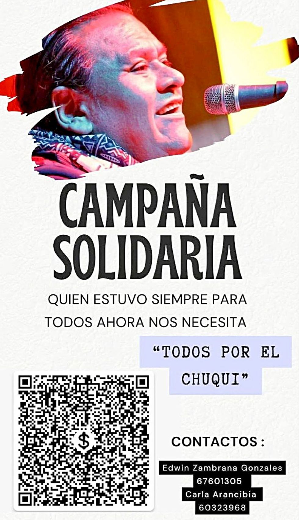 Para consultas o contribuciones, también se habilitaron las líneas de WhatsApp 67601305, de Edwin Zambrana, y 60323968, de Carla Arancibia, hermana del artista e integrante del Dúo La Quimera.