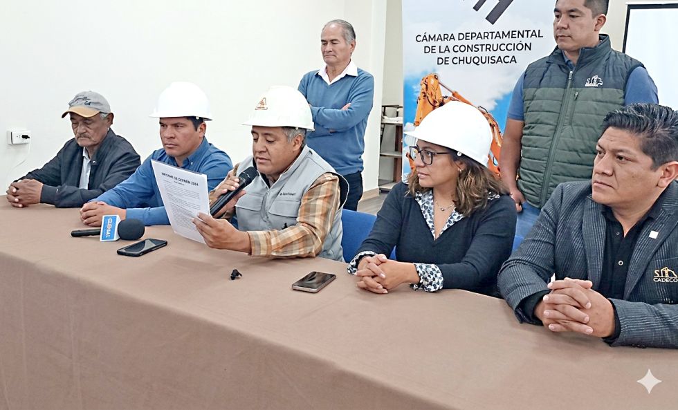 La mañana de este jueves, el presidente de la Cámara de la Construcción (Cadeco) Chuquisaca, Samuel Torres, en una conferencia de prensa, dio lectura a un pronunciamiento de la Cámara Boliviana de la Construcción (Caboco) y sus nueve filiales y anunció el inicio de movilizaciones escalonadas a partir de la próxima semana en protesta por una “dilatación injustificada” por parte del Gobierno nacional en la aprobación de un decreto que permita el reajuste de precios en los contratos de obras públicas.