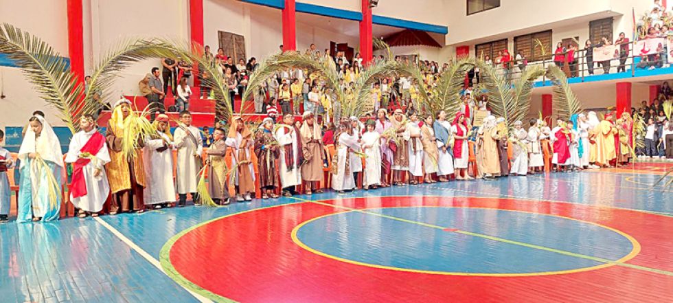 Por la tarde, se celebró una eucaristía en el coliseo San Cristóbal y posteriormente hubo una procesión hacia la Catedral Metropolitana, denominada “Ramos Infantil”, con la participación de algunos establecimientos de la Comunidad Educativa del Arzobispado de Sucre (CEAS).