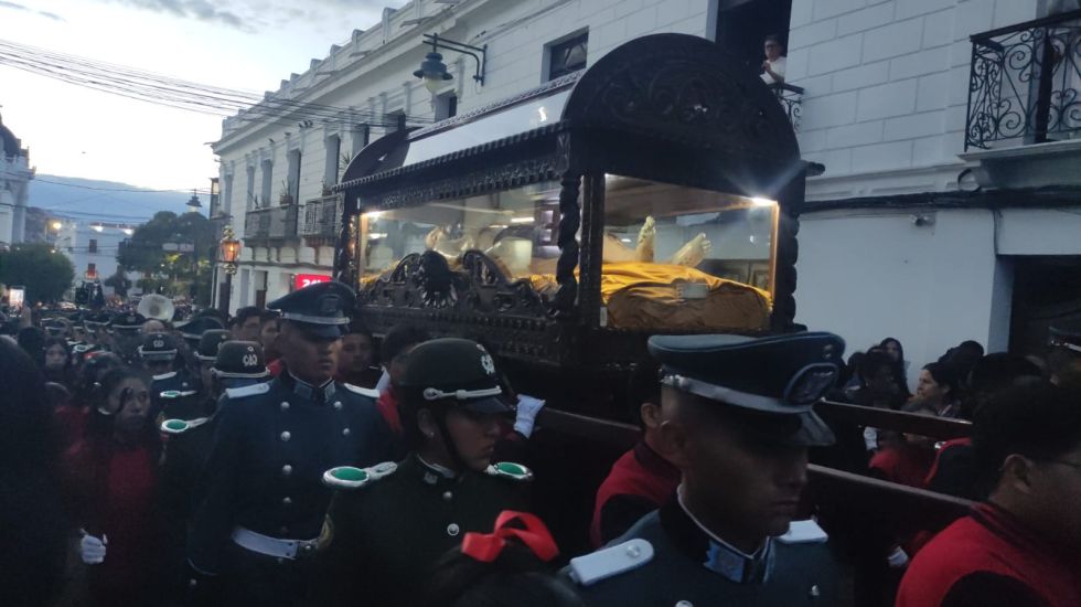 La tradicional procesión del Santo Sepulcro de Jesús partió este viernes desde la iglesia de San Lázaro y recorrió las calles de Sucre con destino a la Plaza 25 de Mayo, acompañada este año por una escolta de efectivos policiales y militares.