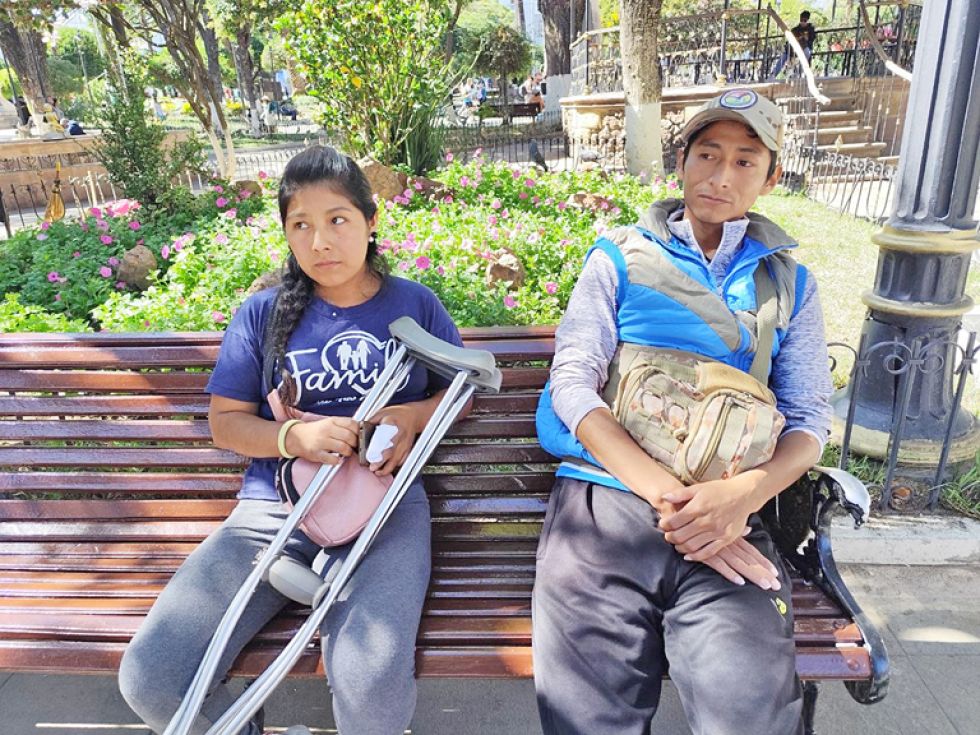 Por las cirugías, el joven de 28 años quedó con la pierna inmóvil y no puede moverse con facilidad. Ante esta situación, su esposa se convirtió en el principal sustento de su familia.