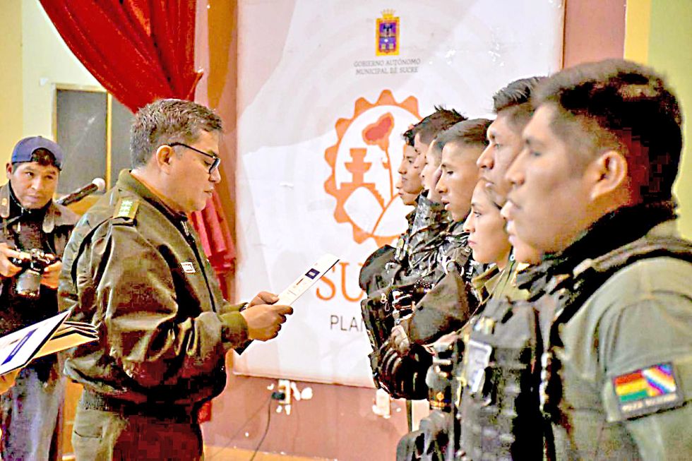 Por su destacado desempeño en los operativos de control durante el Carnaval 2026, la Alcaldía de Sucre entregó la estatuilla “Gran Mariscal de Ayacucho Antonio José de Sucre” y 135 memorándums de reconocimiento a efectivos policiales que prestan servicio en la ciudad.