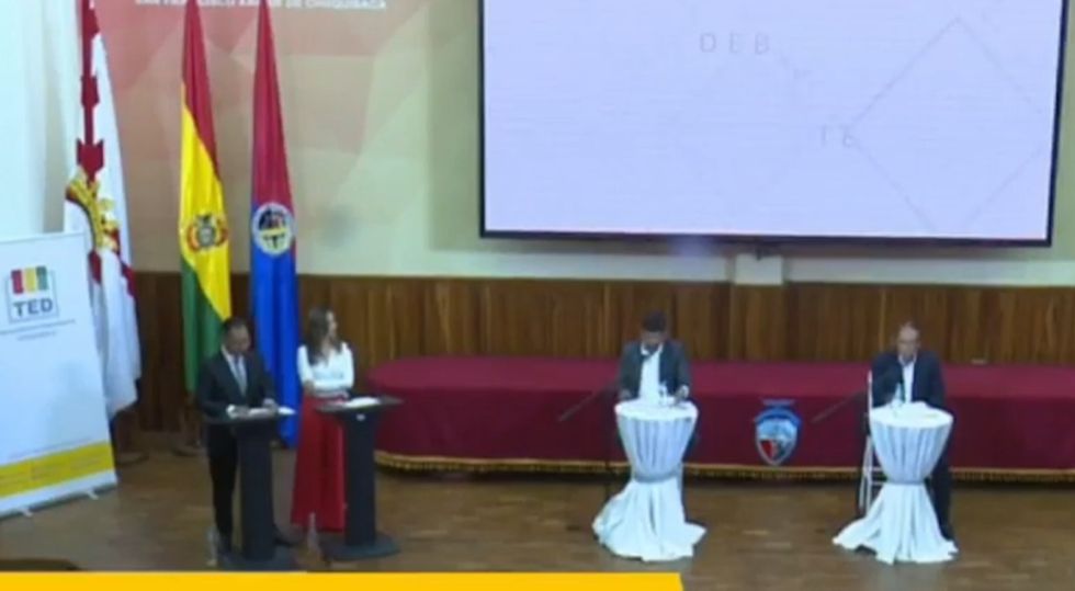 A una semana de la segunda vuelta electoral, los candidatos a la Gobernación de Chuquisaca: Luis Ayllón (Gente Nueva) y Franz García (Patria Unidos), particiapan del debate organizado por el Tribunal Supremo Electoral (TSE) y el Tribunal Electoral Departamental (TED).