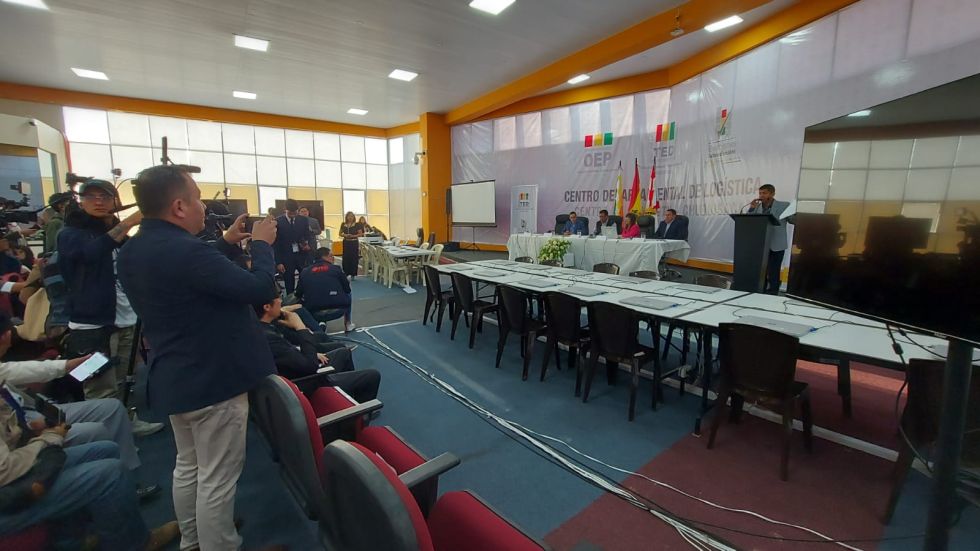 El Centro de Logística Departamental, instalado en el Polideportivo de Garcilazo de la ciudad de Sucre, concentra las principales operaciones del balotaje