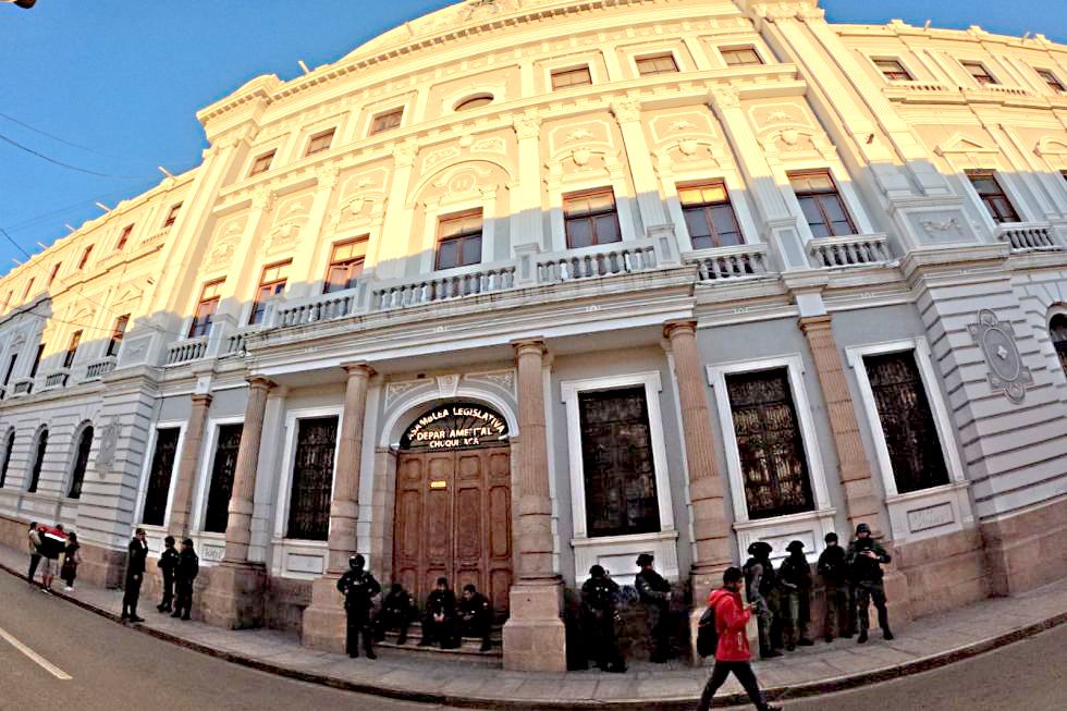 ASAMBLEA. Vista del exterior del edificio donde funciona el legislativo departamental. Foto: Archivo Al menos dos bancadas de la próxima Asamblea Legislativa Departamental de Chuquisaca respaldaron la reducción salarial de los legisladores que asumirán en mayo, luego de que se conociera que el ente legisltivo departamental no cuenta con recursos suficientes para sostener la nueva nómina de 25 asambleístas.