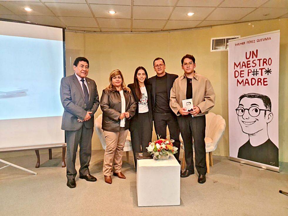 El director del colegio Montessori, Wilmer Pérez Guevara (2do. de la der.), presentó anoche, en el Archivo y Biblioteca Nacionales de Bolivia (ABNB), su libro “Un maestro de p#t* madre”, aunque ante su público, que abarrotó el salón auditorio, dijo que no se trataba de una presentación sino de una “declaración de guerra contra la pedagogía del algodón, esa estafa intelectual que intenta envolver a los niños en una burbuja de felicidad artificial”. Su obra será comentada pronto en la revista dominical ECOS, de CORREO DEL SUR.