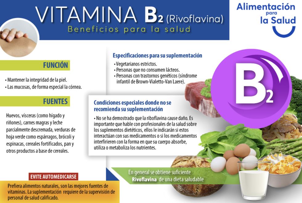 La vitamina B2 o Riboflavina es esencial para asimilar los hidratos de carbono y los aminoácidos. Ayuda a mantener sanas las membranas mucosas