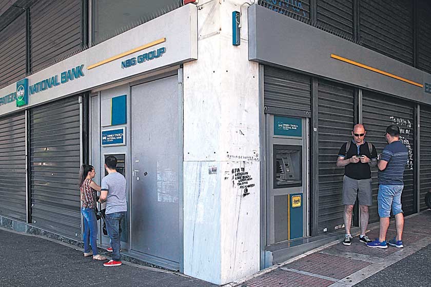 DIÁLOGO. Ciudadanos griegos en un cajero electrónico en la capital, Atenas. DIÁLOGO. Ciudadanos griegos en un cajero electrónico en la capital, Atenas.