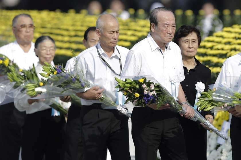 El primer ministro nipón, Shinzo Abe, instó ayer a la comunidad internacional a abandonar el armamento nuclear, durante la ceremonia oficial.