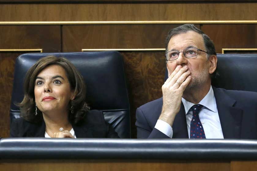 SESIÓN. El presidente del Gobierno en funciones, Mariano Rajoy, y su vicepresidenta, Soraya Sáenz de Santamaría. El Congreso español rechazó ayer la renovación del mandato del presidente del Gobierno español en funciones, Mariano Rajoy, por segunda vez esta semana, un resultado que mantiene el bloqueo político en España y pone en marcha la cuenta atrás de una posible repetición electoral.