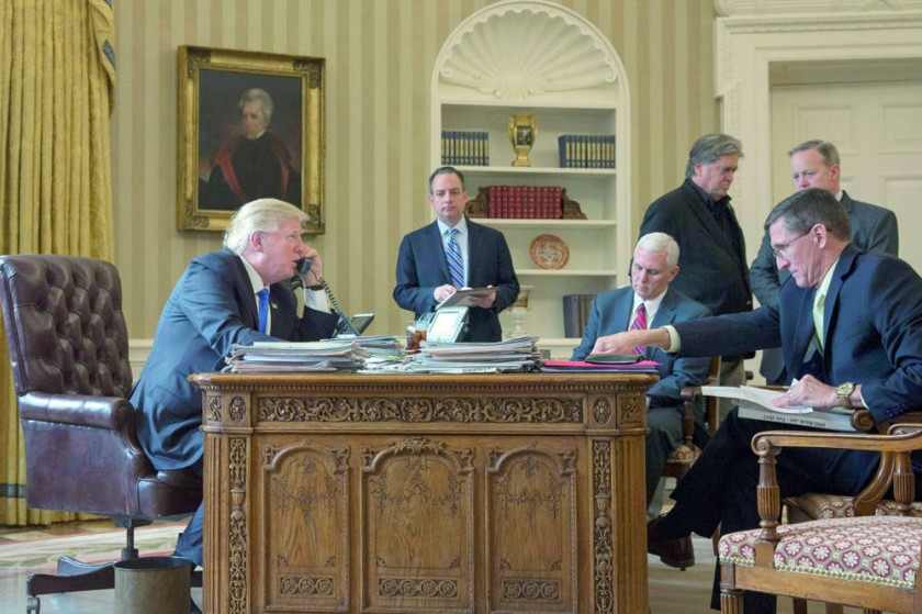 CONTACTO. Rodeado por varios de sus asesores, el presidente de Estados Unidos, Donald Trump, mantuvo su primer... El veto temporal a la entrada de ciudadanos de varios países de mayoría musulmana decretado por el presidente de Estados Unidos, Donald Trump, provocó ayer el caos y la indignación en medio mundo, mientras numerosos viajeros veían bloqueado ya su acceso a territorio estadounidense.