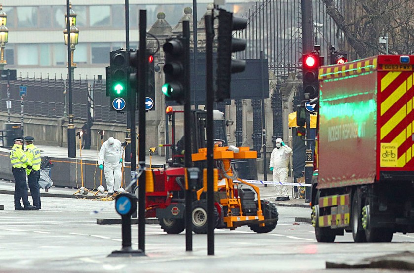 INVESTIGACIÓN. Operadores de la Policía especializada buscan pruebas en el lugar del atentado ocurrido en Londres. La Policía británica identificó ayer a Khalid Masood, un británico de 52 años, como el autor del atentado del miércoles en Londres, que dejó cinco muertos y 40 heridos y que fue revindicado por la milicia terrorista Estado Islámico (EI).