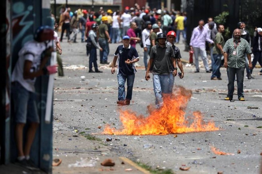 Manifestantes se enfrentan a miembros de la Guardia Nacional Bolivariana en las inmediaciones del canal VTV. EFE Comercios cerrados, sin transporte público, calles desoladas y bloqueadas con barricadas: Venezuela está paralizada parcialmente por una huelga que exige al presidente Nicolás Maduro que retire su convocatoria a una Asamblea Constituyente, tras casi cuatro meses de protestas que dejan 97 muertos.