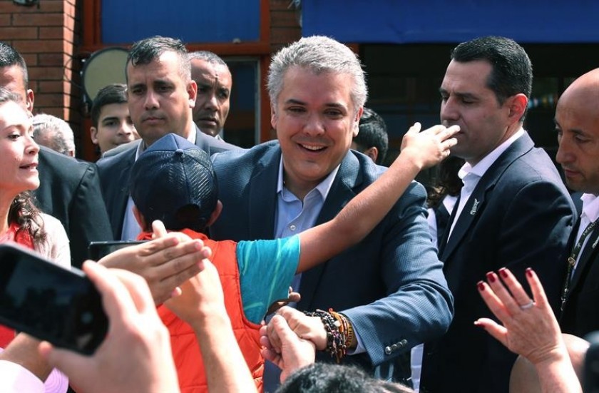 El candidato del partido uribista Centro Democrático, Iván Duque, fue elegido hoy presidente de Colombia con una votación que supera los diez millones de votos, cuando se ha contabilizado el 98,20 % de las mesas.