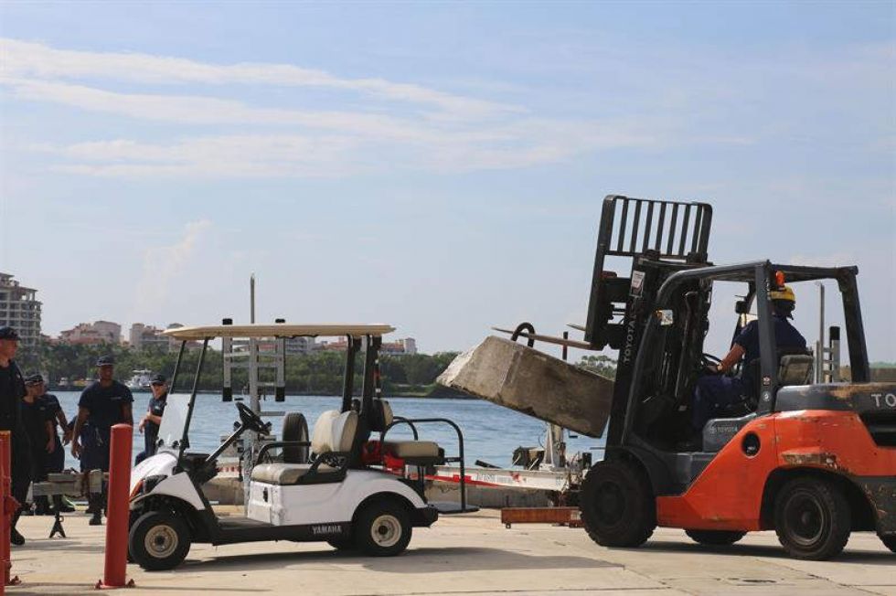 Fotografía cedida por la Guardia Costera estadounidense donde aparecen miembros de Ingeniería de Instalaciones mientras ponen muros de contención en una calle de Miami . Foto: EFE El huracán Dorian sigue ganando fuerza con vientos máximos sostenidos de 110 millas por hora (175 km/h) y podría convertirse hoy en un ciclón de categoría mayor mientras se desplaza lentamente hacia Florida.