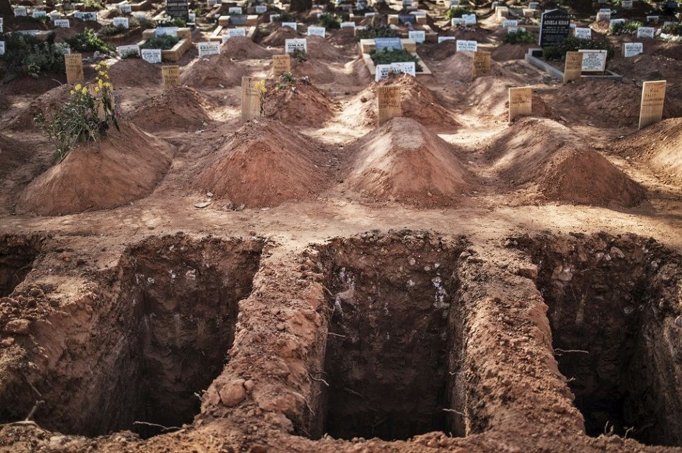 Fosas del cementerio de Johannesburgo, capital de Sudáfrica, el país con más fallecidos por covid-19 en África. Foto: AFP La Organización Mundial de la Salud (OMS) se declaró este lunes preocupada por la "aceleración" de la pandemia de covid-19 en el continente africano, que hasta ahora había sido afectado levemente.