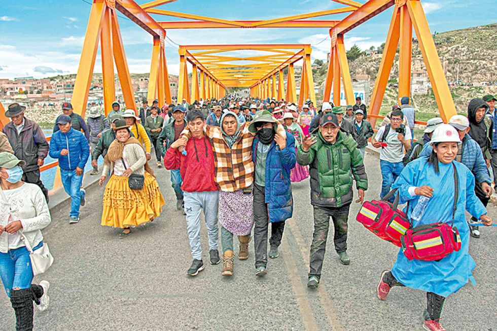 “Debido a las dificultades, al caudal del río y al ataque con piedras y otros objetos contundentes de un grupo de manifestantes, seis miembros de una patrulla fueron arrastrados por la corriente, trayendo como consecuencia el fallecimiento por ahogamiento del cabo Franz Canazas”, indicó el Comando Conjunto de las Fuerzas Armadas en un comunicado.