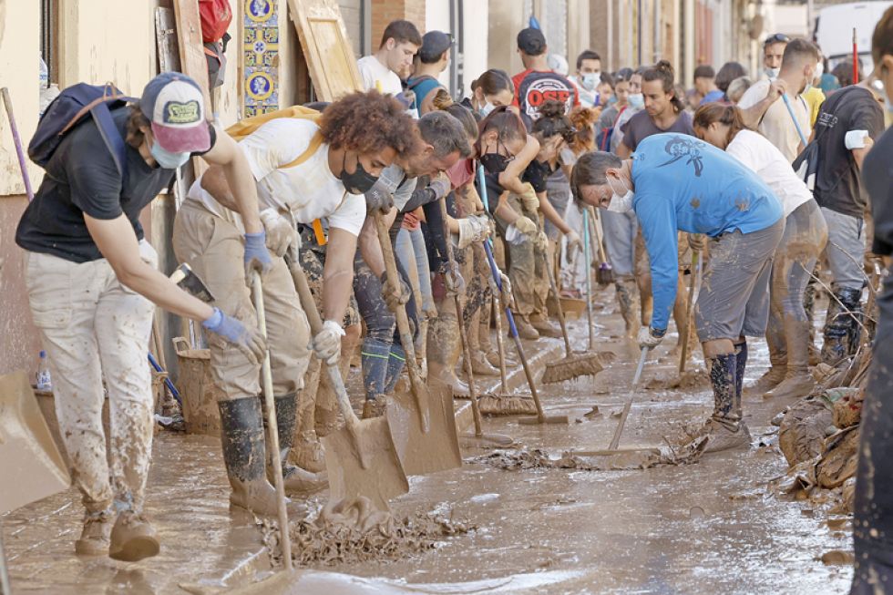 Este sábado, cuatro días después de las inundaciones provocadas por el temporal, miles de efectivos y voluntarios se afanan en luchar contra el fango y el lodo para encontrar a los desaparecidos y limpiar vías y accesos a pueblos para que pueda llegar la ayuda necesaria.