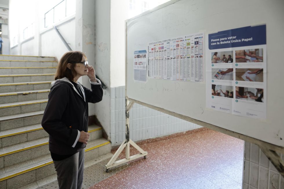 Una mujer comprueba la oferta electoral en un colegio electoral en la Ciudad de Buenos Aires. Foto: EFE Los colegios electorales de Argentina abrieron en la mañana de este domingo para la celebración de unos comicios de medio término que definirán la composición del Congreso a partir de diciembre y revelarán el grado de respaldo de la ciudadanía a las políticas del Gobierno de Javier Milei.