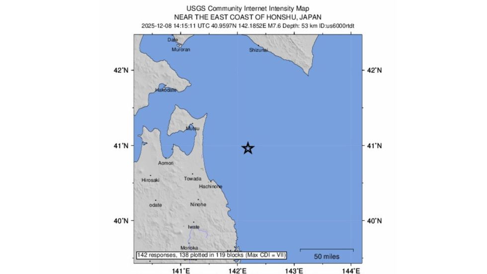 El temblor se produjo frente a las costas de la prefectura de Aomori, en el noreste del archipiélago, con epicentro a 50 kilómetros de profundidad