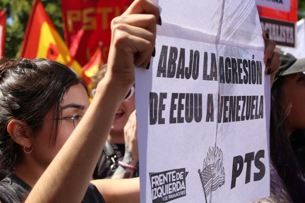 Manifestantes y líderes de izquierda se movilizaron frente a la embajada de EEUU y en otras ciudades para rechazar la intervención militar y exigir respeto al derecho internacional