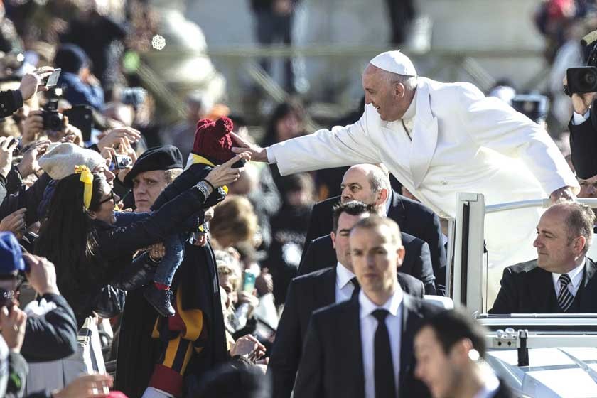 CARIÑO. El papa Francisco acaricia a un niño cuando llega a la Audiencia Jubilar en la plaza de San Pedro El nuevo libro escrito con las respuestas del Papa es quizá el más difícil al que se tuvo que enfrentar, porque contiene preguntas que surgen de la ingenuidad y espontaneidad de cartas escritas por 30 niños de todo el mundo.