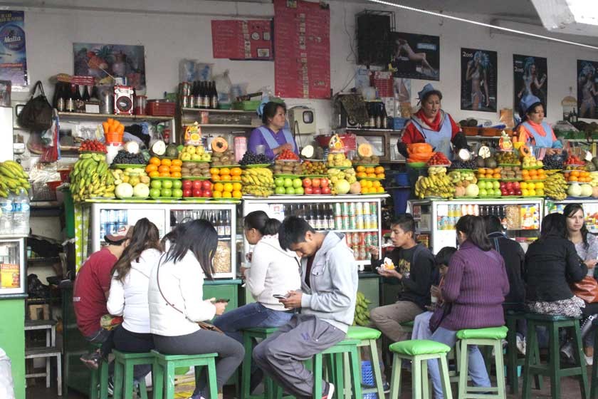 Los jugos “puros” de fruta, sin agua ni ningún otro elemento, son los preferidos de los extranjeros, dice Mariela Albino, aunque discrepa Verónica Soliz, quien dice que más bien les gusta tomar “una mescolanza”, pero “hay que complacerles”, afirma, al comentar que siempre piden sugerencias y les ofrecen chirimoya o maracuyá, “la chirimoya porque es muy rica con leche y la maracuyá porque les gustan los cítricos”.