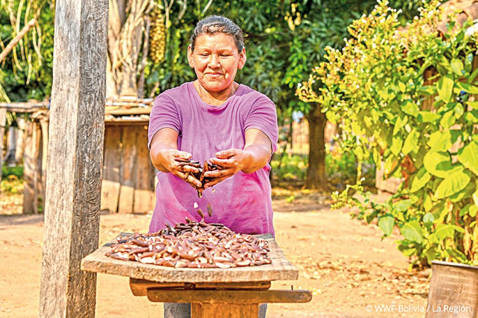 Toda esta actividad productiva tiene además otro gran valor: el cuidado del Bosque Seco Chiquitano. Así lo resume Ignacia Supepí: “Tuvimos varias capacitaciones para transformar el aceite en champú. Nos interesó porque si trabajábamos con eso, protegíamos más el bosque. Ese fue nuestro ánimo. Íbamos a ayudar a seguir cuidando (el bosque) porque eso significa que es un árbol más que no se puede cortar”.