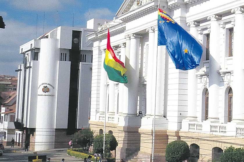 El Presidente reiteró además que en la Capital se construirá un Palacio de Justicia, obra que demandará una inversión de $us 70 millones de dólares, y sugirió la imagen de una montera de Tarabuco, para identificarlo. También indicó que se está a la espera del diseño de los arquitectos.