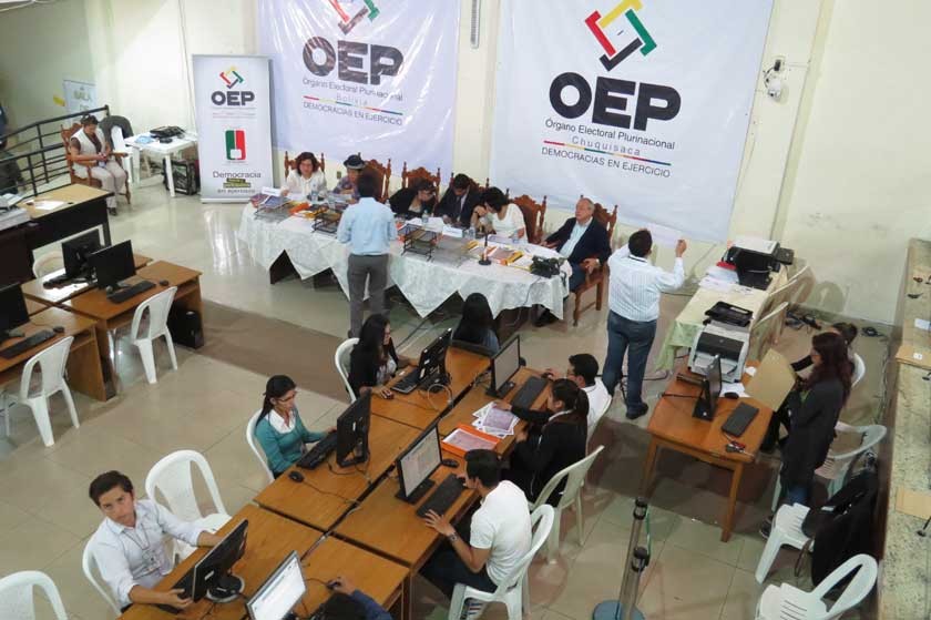 Los vocales del TSE, antes de instalar la Sala Plena, habían explicado que habían decidido esperar a que llegasen todas las actas que corresponden a Chuquisaca para continuar con el cómputo y que mientras tanto iban a proseguir con el cómputo de los votos del exterior, reclamados por ciudadanos después de que autoridades dijeran que podían ser determinantes. Los delegados del No, sin embargo, no escucharon razones.