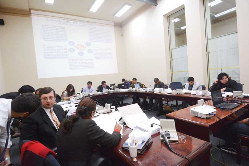 TRABAJO. La comisión investigadora de los contratos del Estado con la empresa china CAMC en una de sus últimas sesiones. El ex presidente y vocero de la causa marítima, Carlos Mesa, confirmó que durante su gobierno se suscribió un crédito chino para el que fue propuesta la empresa CAMC, sin embargo, enfatizó que la polémica sobre esta firma asiática no se basa en establecer desde cuándo empezó a operar en el país, sino si hubo o no tráfico de influencias del Gobierno del presidente Evo Morales a partir de su relación con su ex pareja Gabriela Zapata.