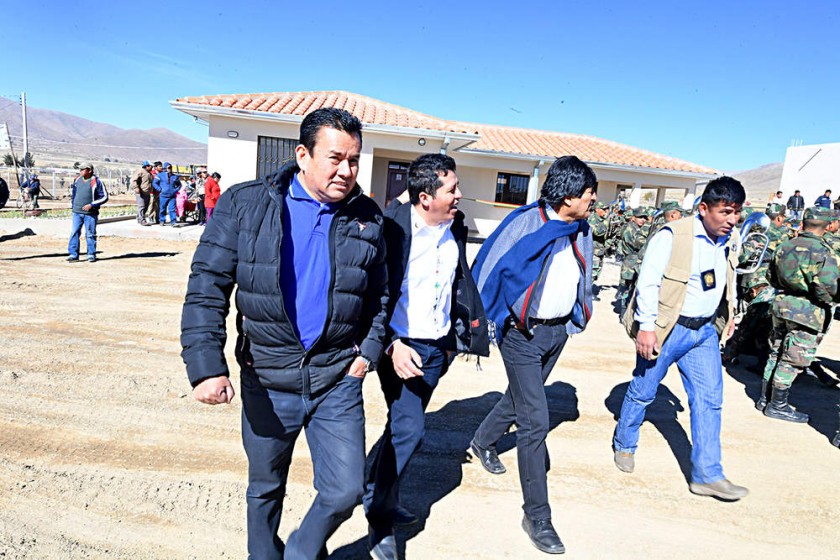 Durante la entrega, el presidente Evo Morales reveló que el helicóptero en el que viajaba casi no aterrizó por el fuerte viento que se registró en la zona.