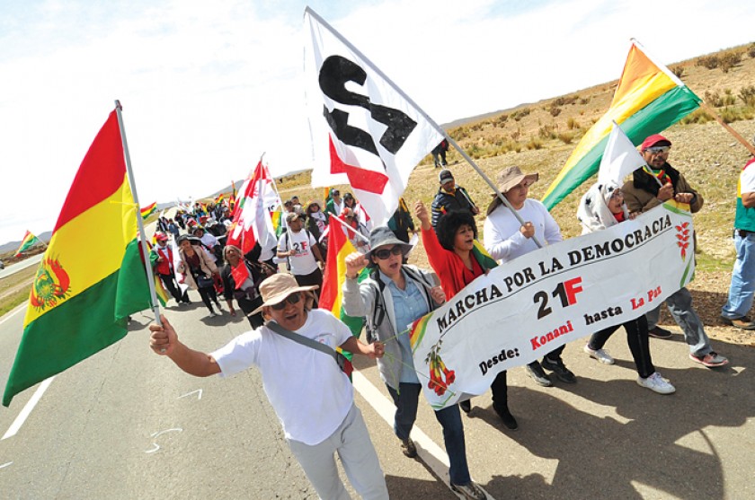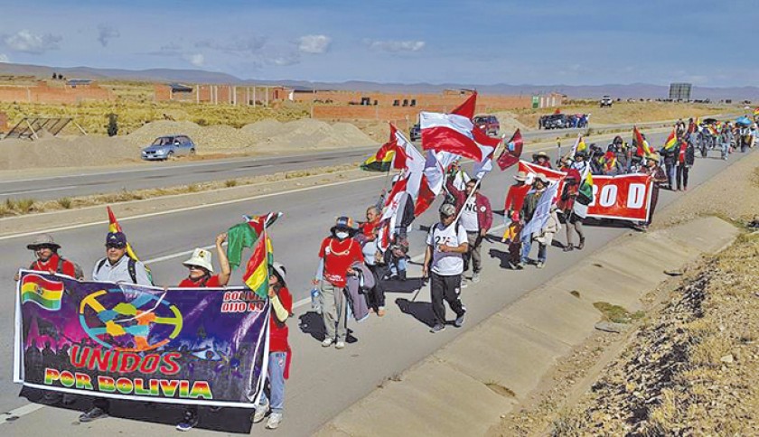 La movilización central que reúne a varios colectivos ciudadanos del país partió ayer desde la localidad orureña de Konani, a 147 kilómetros de La Paz, para marchar "en defensa de la democracia" y el respeto de los resultados del referéndum en 2016 que negó la posibilidad a Evo Morales a reelegirse.