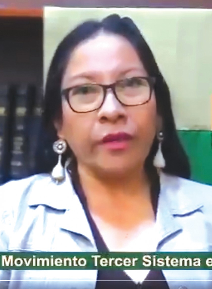 La candidata a la Vicepresidencia, Lucila Mendieta, se manifiesta en quechua, mientras que el gobernador Patzi habla en aymara.