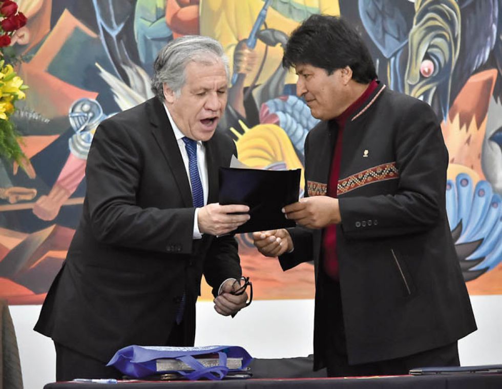 VISITA. El presidente Evo Morales y el secretario general de la OEA Luis Almagro, el viernes. VISITA. El presidente Evo Morales y el secretario general de la OEA Luis Almagro, el viernes. Foto: Archivo