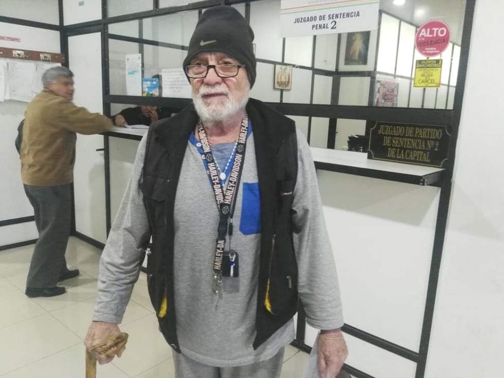Apoyado en un bastón, Valle de 76 años llegó este lunes al juzgado de sentencia penal tercero de Tribunal Departamental de Justicia para asistir a dichas audiencias, mismas que fueron suspendidas para este miércoles en la tarde.