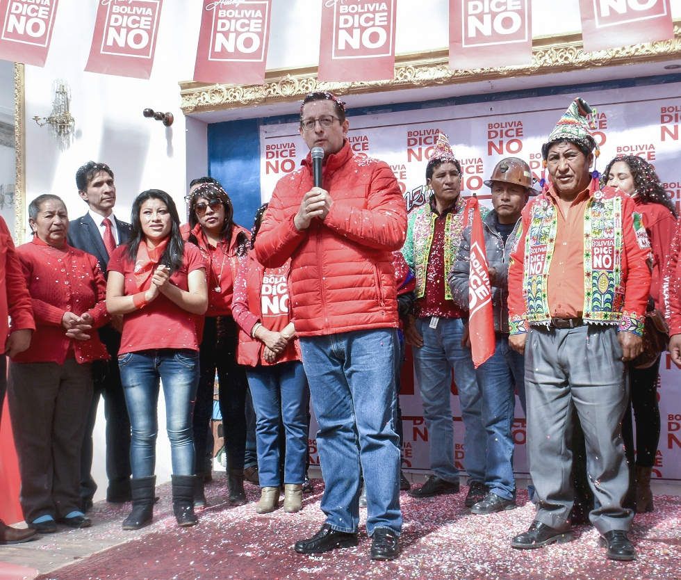 "Carlos Mesa tiene más fotos acompañando a Evo Morales que como opositor. Y eso tampoco puede borrarse de un día para otro. Acaso no continúa siendo el vocero de Evo Morales para la causa marítima, cargo desde el cual es corresponsable del resultado trágico de La Haya", agregó.