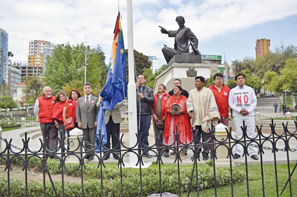 El senador y también postulante presidencial de la alianza Bolivia Dice No, Óscar Ortiz, se presentó ante el monumento a Eduardo Abaroa en la plaza del mismo nombre en La Paz, para izar una bandera nacional con crespón negro atribuyendo la derrota por el mar a sus dos principales adversarios electorales.