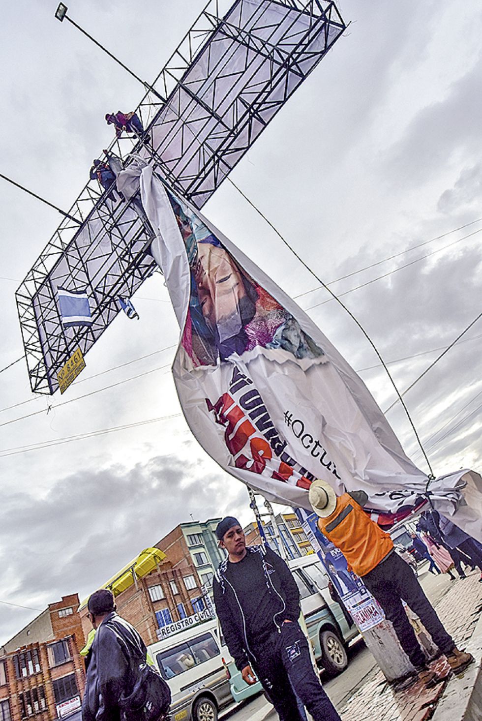 Empero la presidenta del Tribunal Electoral Departamental (TDE) de La Paz, Flora Laruta, detalló que no se identificó al autor o autores que pusieron la gigantografía.