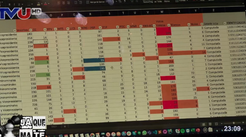 "Hay varios tipos de análisis que se pueden hacer de lo que ha generado el Tribunal Electoral, mostraré uno de tres tipos de análisis que es la diferencia entre el TREP y el cómputo final, tendría que haber muy pocas diferencias entre ambos, sin embargo, hay un montón de diferencias y en su mayoría beneficia al MAS", señaló Villegas en el programa Jaque Mate de Televisión Universitaria (TVU).