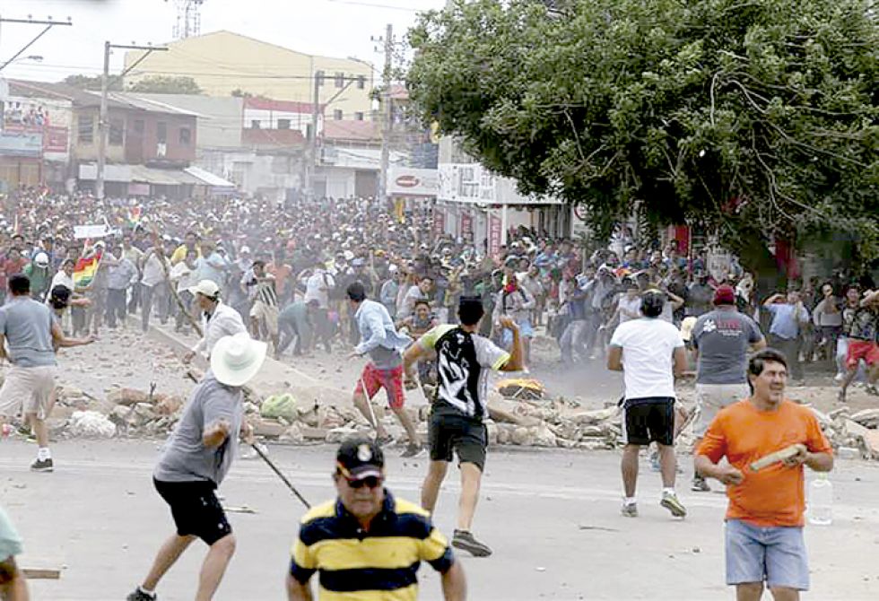 En el sexto día de paro cívico general indefinido los enfrentamientos se acentuaron en las ciudades de Cochabamba, Santa Cruz y La Paz, debido a que choferes, mineros y seguidores del MAS intentaron desbloquear las vías cerradas por vecinos que demandan el respeto al voto y la anulación de los comicios generales.