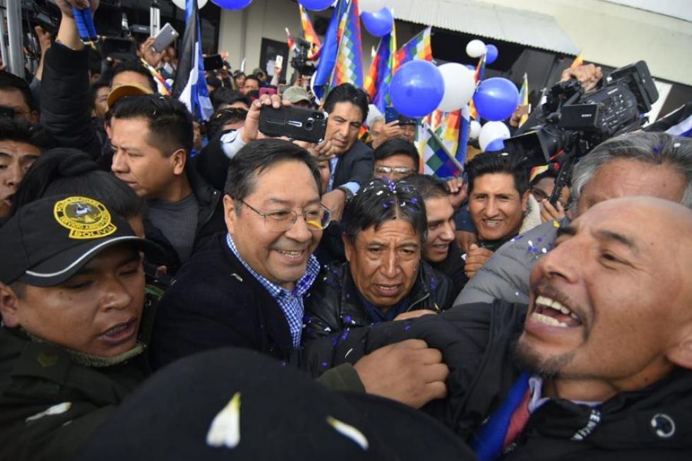 El candidato presidencial del MAS, Luis Arce Catacora, llegó la mañana de este martes al Aeropuerto de El Alto, donde fue recibido por una concentración de militantes del partido azul que lo vitorearon en su regreso a Bolivia.