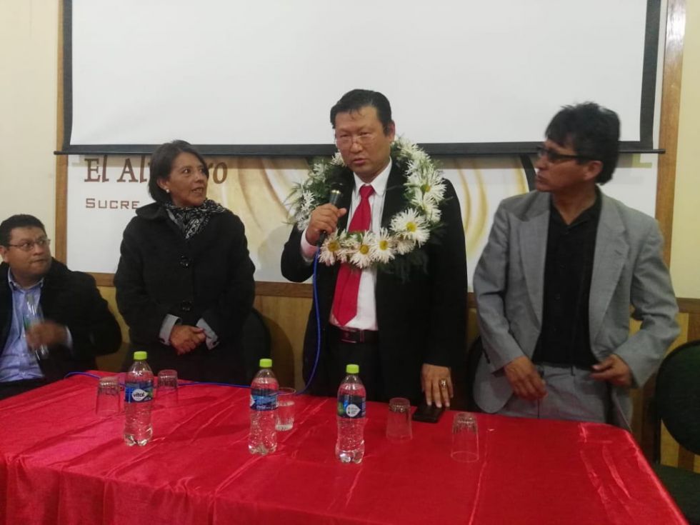 Con cantos y una oración, el candidato Chi Hyun Chung inició hace unos momentos su campaña electoral, rumbo a los comicios generales del 3 de mayo, en Sucre.