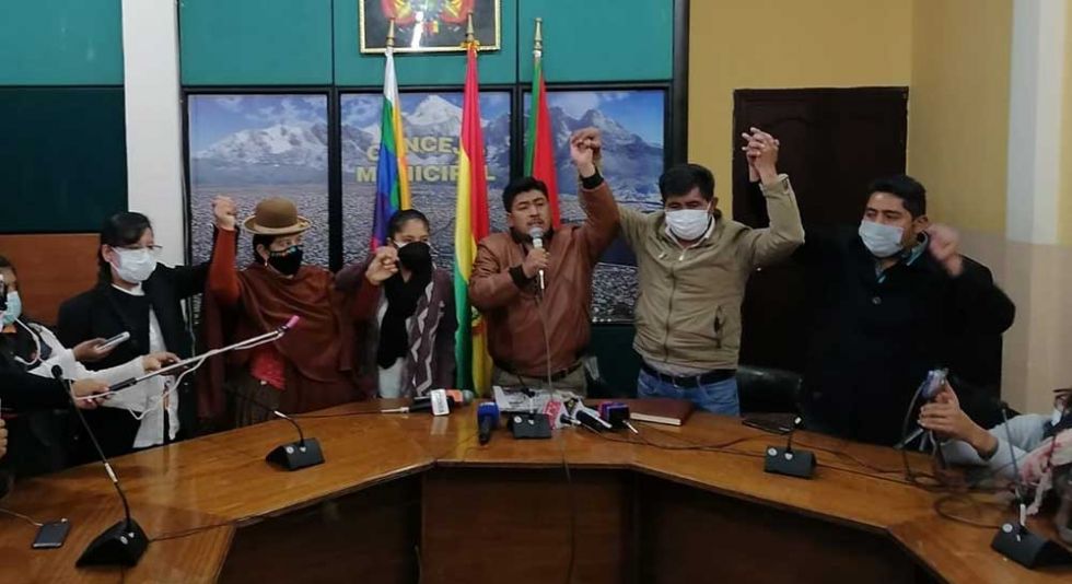 “Estamos firmes para brindarle todo el apoyo y todo el respaldo a nuestra hermana Alcaldesa (Eva Copa), prácticamente, vamos a garantizar (la gestión) los seis (concejales) que hemos trabajado durante la campaña proponiendo, socializando”, afirmó.