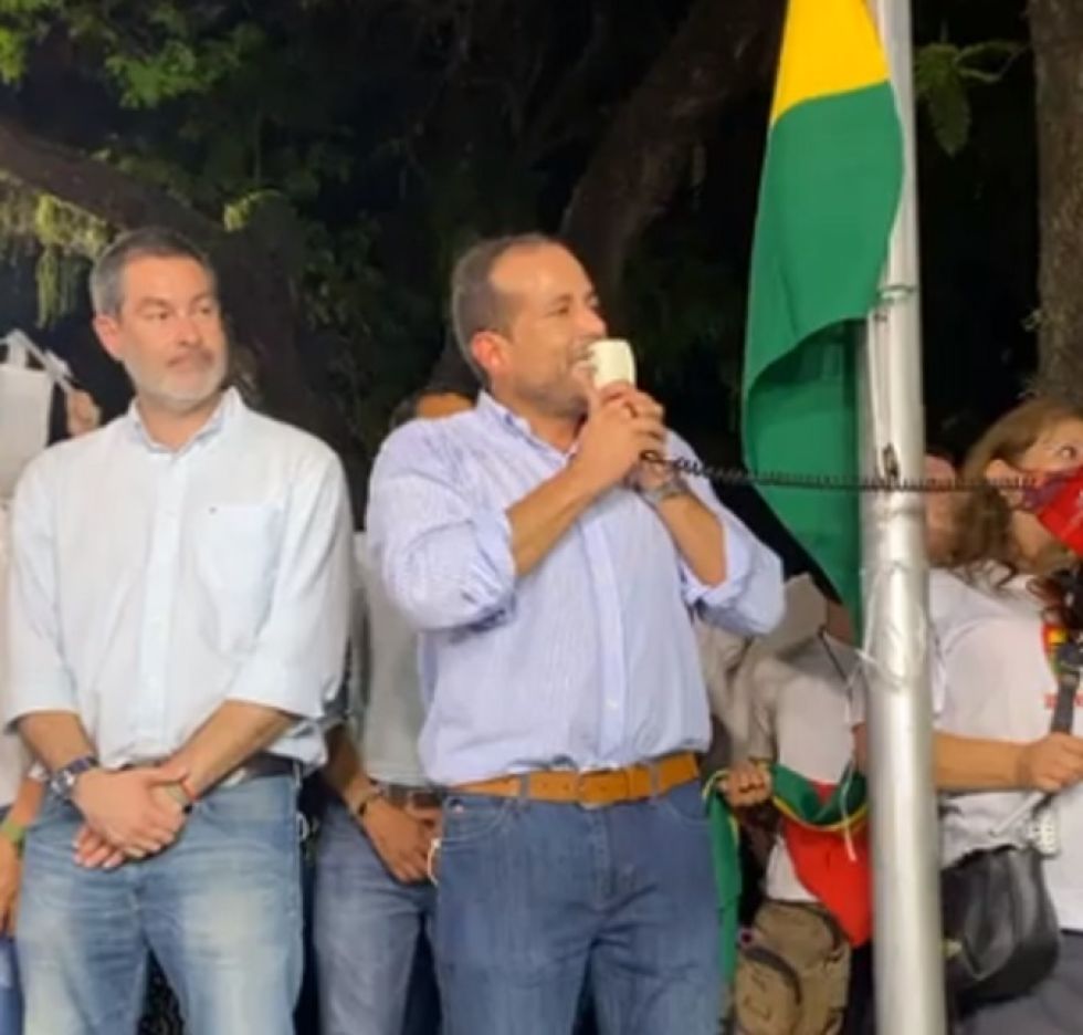 Luis Fernando Camacho en la plaza 24 de Septiembre la noche de este jueves. Foto: captura de pantalla El gobernador de Santa Cruz, Luis Fernando Camacho, recibió este jueves a los marchistas indígenas de Beni, habló de federalismo e invitó al dirigente Marcial Fabricano a trabajar para “dibujar el futuro de la Bolivia que queremos”.