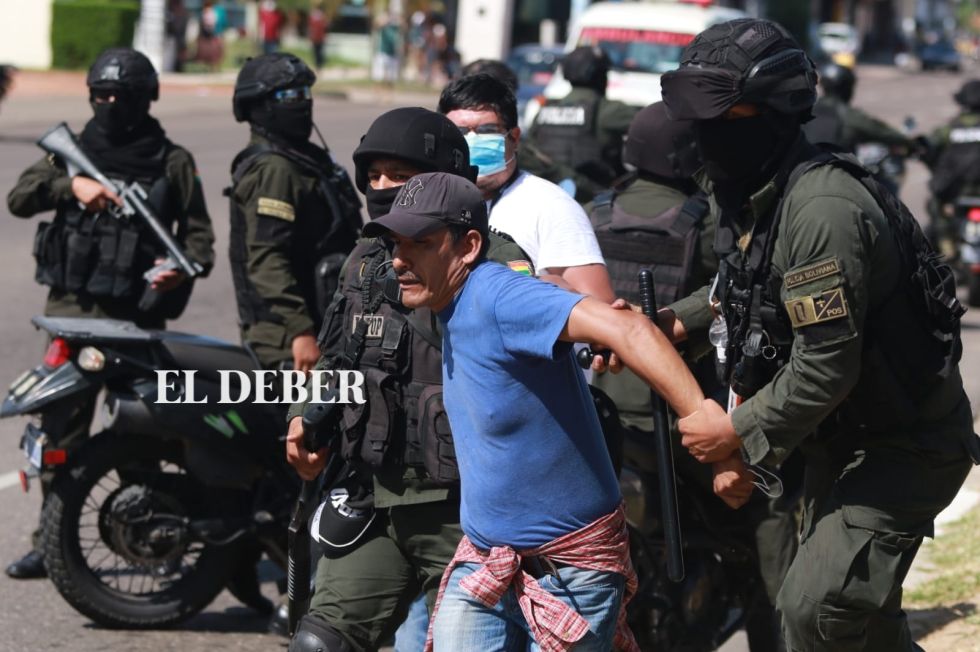 El resultado fue decenas de detenidos, varios heridos y gasificados. Según El Deber, desde temprano de esta jornada, diversos sectores afines al partido oficialista sostuvieron un discurso agresivo para manifestar su desacuerdo con el paro nacional multisectorial. Rolando Borda, dirigente de la COD de Santa Cruz, y el dirigente gremial Jaime Flores, ambos afines al MAS, recorrieron las calles junto a unas 200 personas, varios de ellos con los rostros cubiertos, para desbloquear las vías.