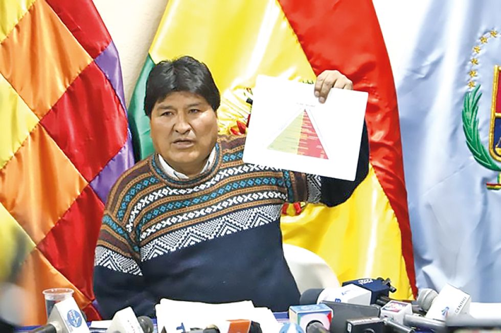 “Lamento desmentir al hermano Edmundo Novillo (ministro de Defensa). Yo lo conocí en el instrumento político. La semana pasada dijo ‘no hay plan negro’. Por favor, hermano Edmundo Novillo, juntos nos hemos educado, no mienta (…). Acá tengo una copia, aquí está el ‘plan negro’ (mostró una hoja), hecho en la Escuela de Inteligencia de las Fuerzas Armadas, una planificación”, demostró el líder del MAS, en una conferencia de prensa.