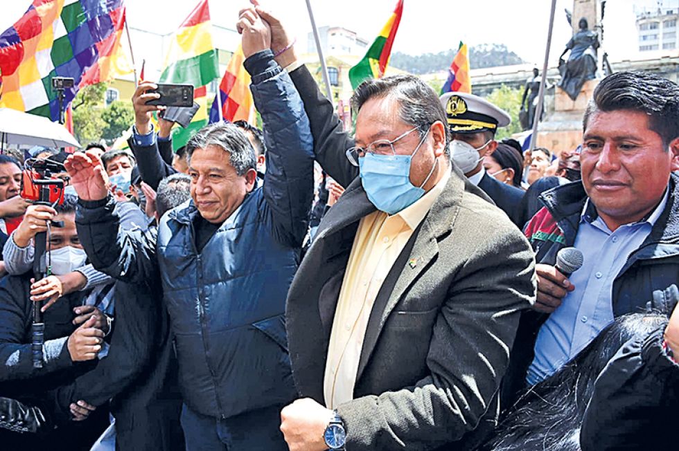 Con una concentración en la plaza Murillo de la ciudad de La Paz, el presidente Luis Arce y el vicepresidente David Choquehuanca, junto a militantes del MAS, festejaron los dos años de las elecciones de 2020, cuando lograron el 55% de los votos.