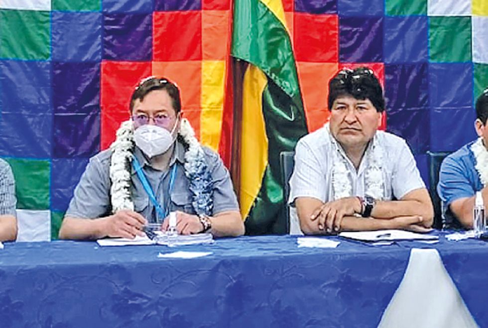 ¿ENFRENTADOS?. El presidente Luis Arce y el expresidente Evo Morales en una reunión del MAS en la ciudad de La Paz. Foto: Archivo La idea fue lanzada por el diputado Héctor Arce, líder del ala evista en la Asamblea Legislativa Plurinacional. “Nos vamos a ver en las elecciones primarias y eso es algo que está establecido en la ley”, afirmó, en declaraciones a la red Unitel.